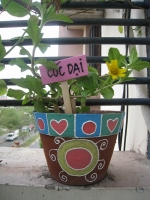Chậc..lâu rồi không viết blog. Hôm nay ngồi tản mản viết 1 chút... Nhân tiện giới thiệu và xác nhận luôn rằng màu acrylic và fabric có thể vẽ lên gốm được. Để ngoài mưa cũng khôn bị bay nhá các bạn ( đã làm và chứng thực tại nhà mình :-))