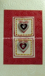 Mã Số : TM21 Tên Sản phẩm : Thiệp 2 trái tim có móc xoắn Chất liệu : Giấy, màu nổi, hình tim Màu sắc : như trong hình Kích thước :14.5 * 21cm Giá bán lẻ hiện tại : 30.000/ 1tấm Tình trạng hàng : đặt trước